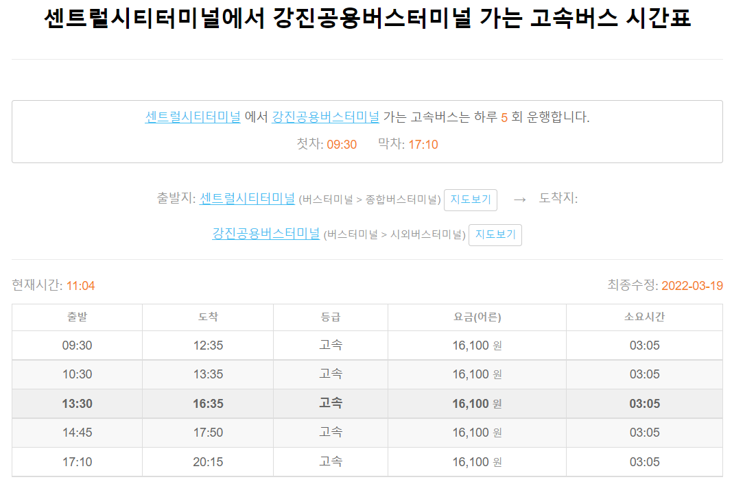 전국 시외버스, 고속버스 터미널 및 운영 노선 / 운행 시간표를 정보를 제공합니다.