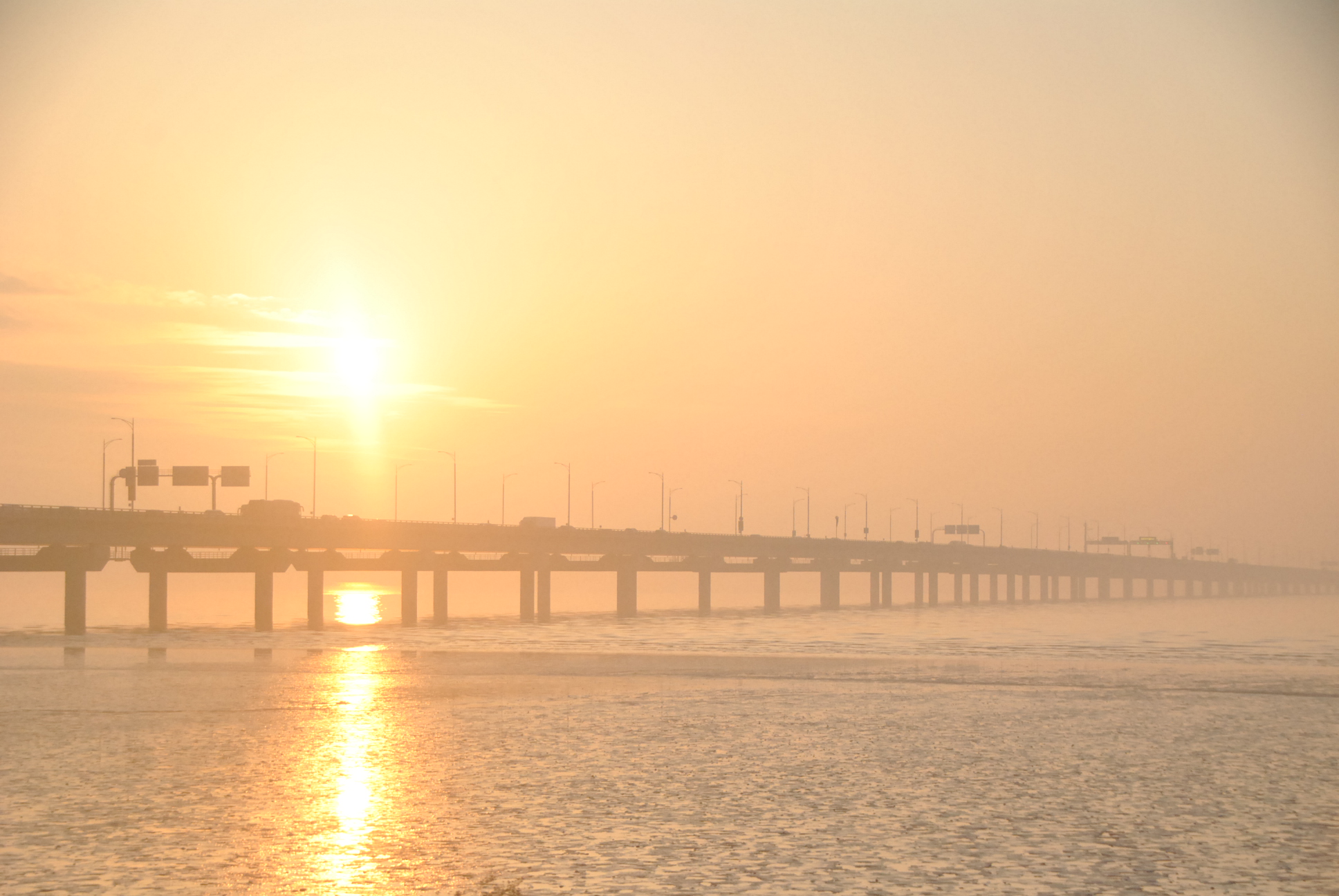 인천대교 기념관 앞 인천대교 왼편 일출 - 송도 방향의 일출이다.