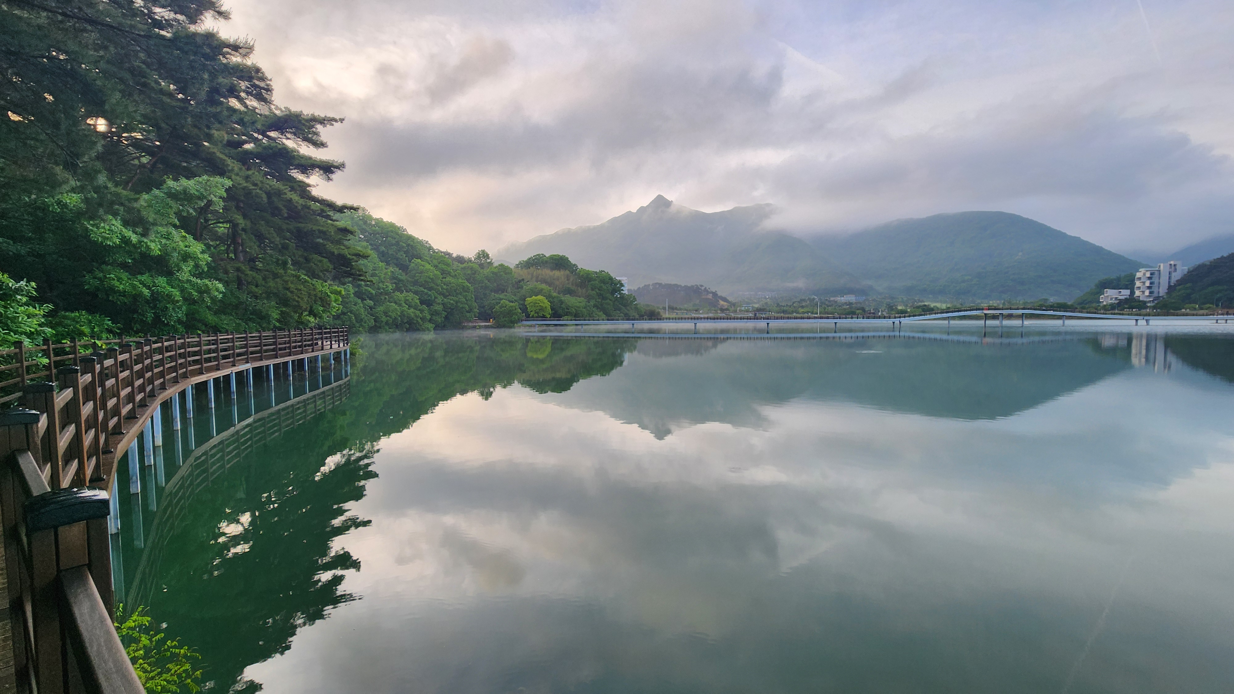풍경을 담고 내장산에서 흘러나오는 아침공기를 마시며 천천히 호수를 거닐어야 분위기가 맞아 보인다.