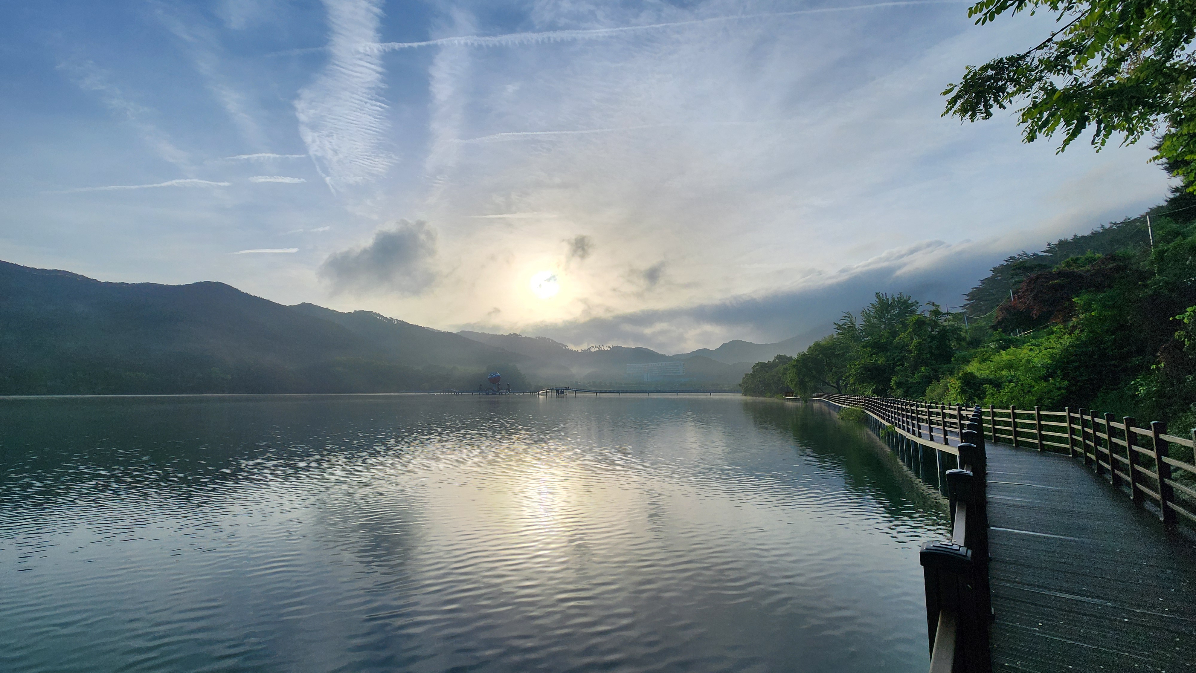 조깅이라 달릴만도 하지만 조용한 아침 풍경을 두고 뛰어가는 건 좀 아니다.