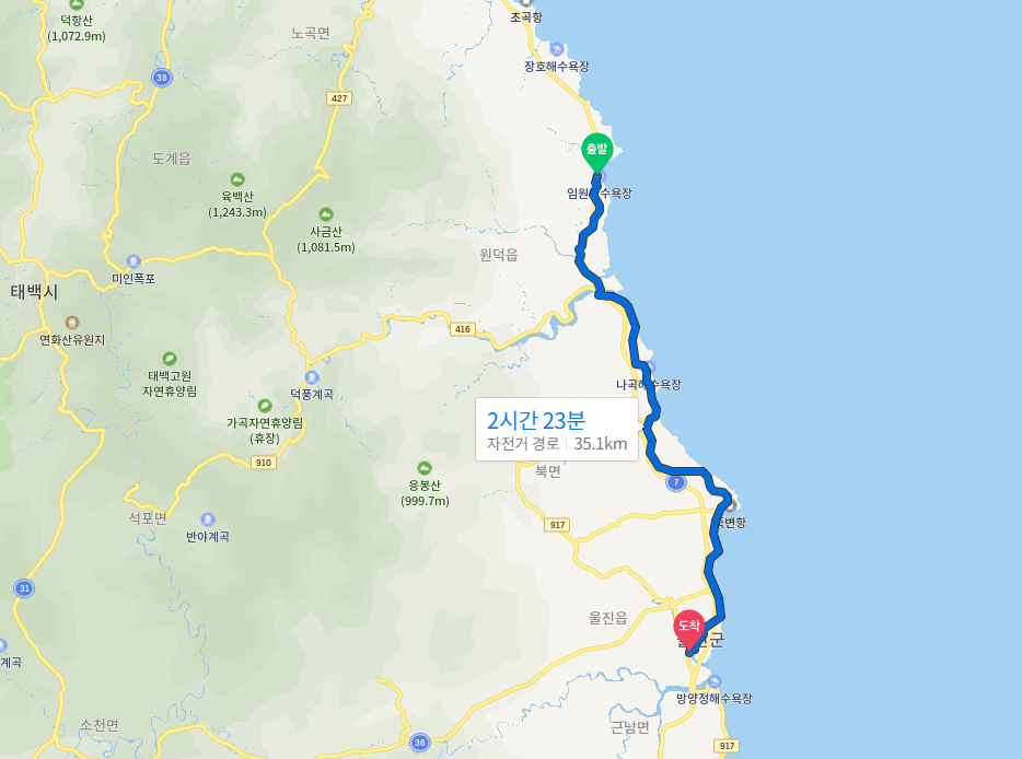 임원에서 울진버스터미널 이동 구간이 만만치 않다. 약 35Km,