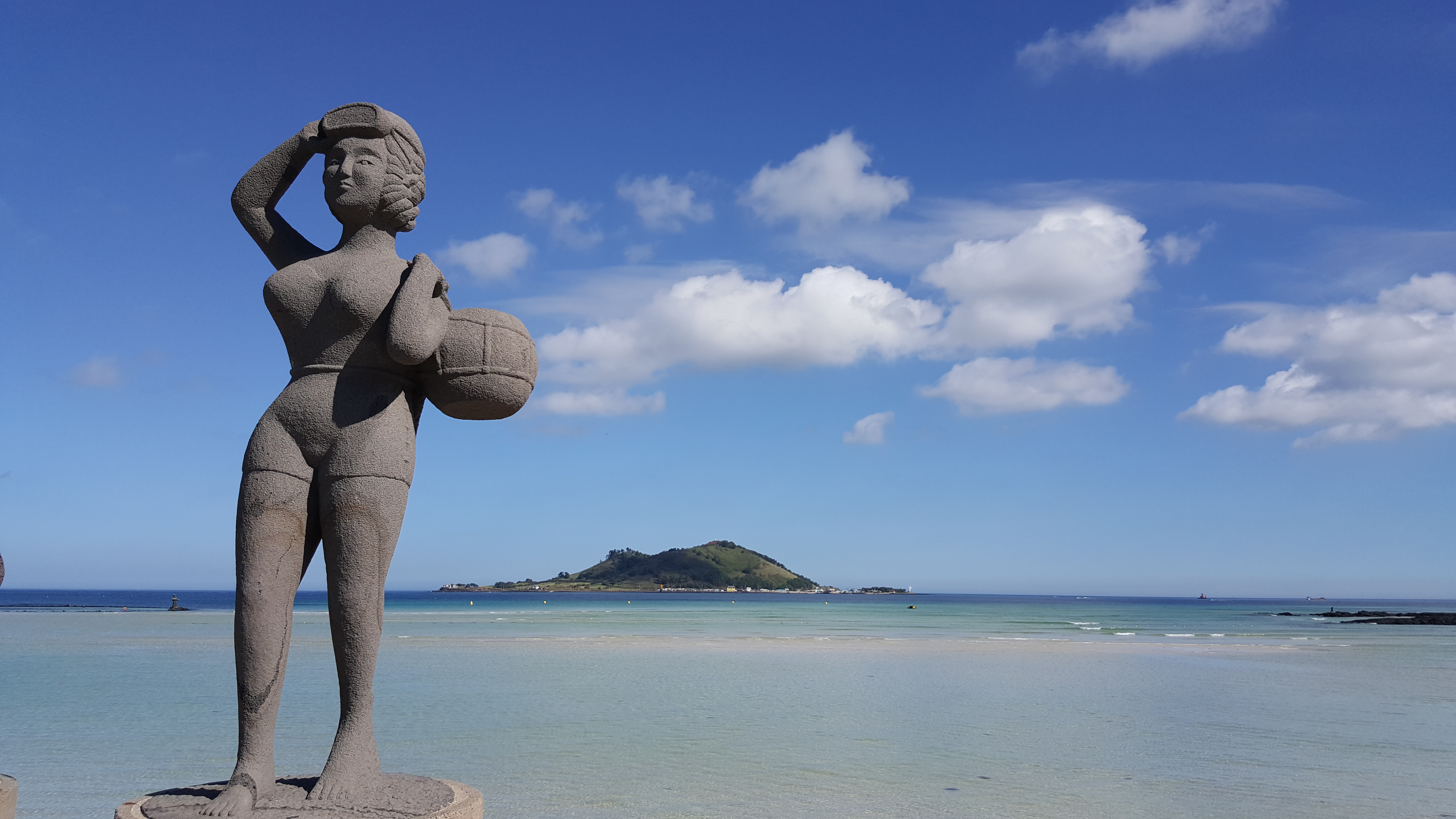 바닷물은 에메랄드빛으로 맑고 투명하고 수심이 얕고 파도가 잔잔하여 수영하기에 좋다. 마치 인어공주가 살고 있을 것 같은 느낌을 준다. 실제 위와 같이 인어동상도 있다.