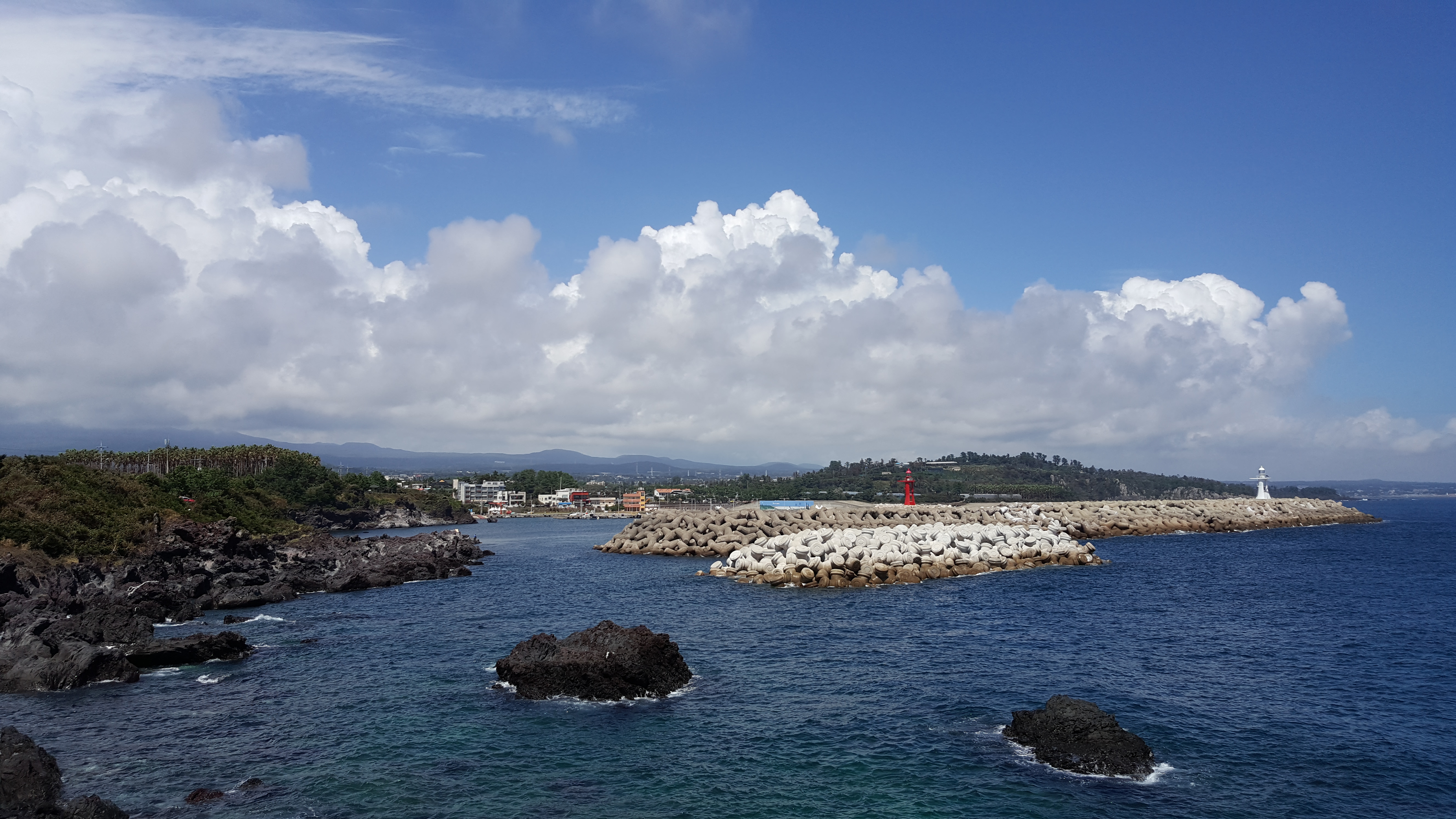 서귀포항엔 마침 뭉개구름이 산 보다 더 가득하다.
