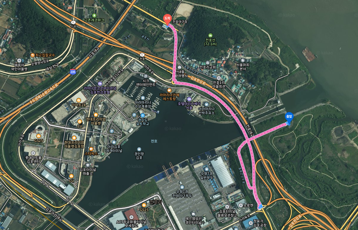 김포 한 바퀴 구간에서 제일 안전하지 않은 길이라 후미등 켜고 달리길 권고한다.
