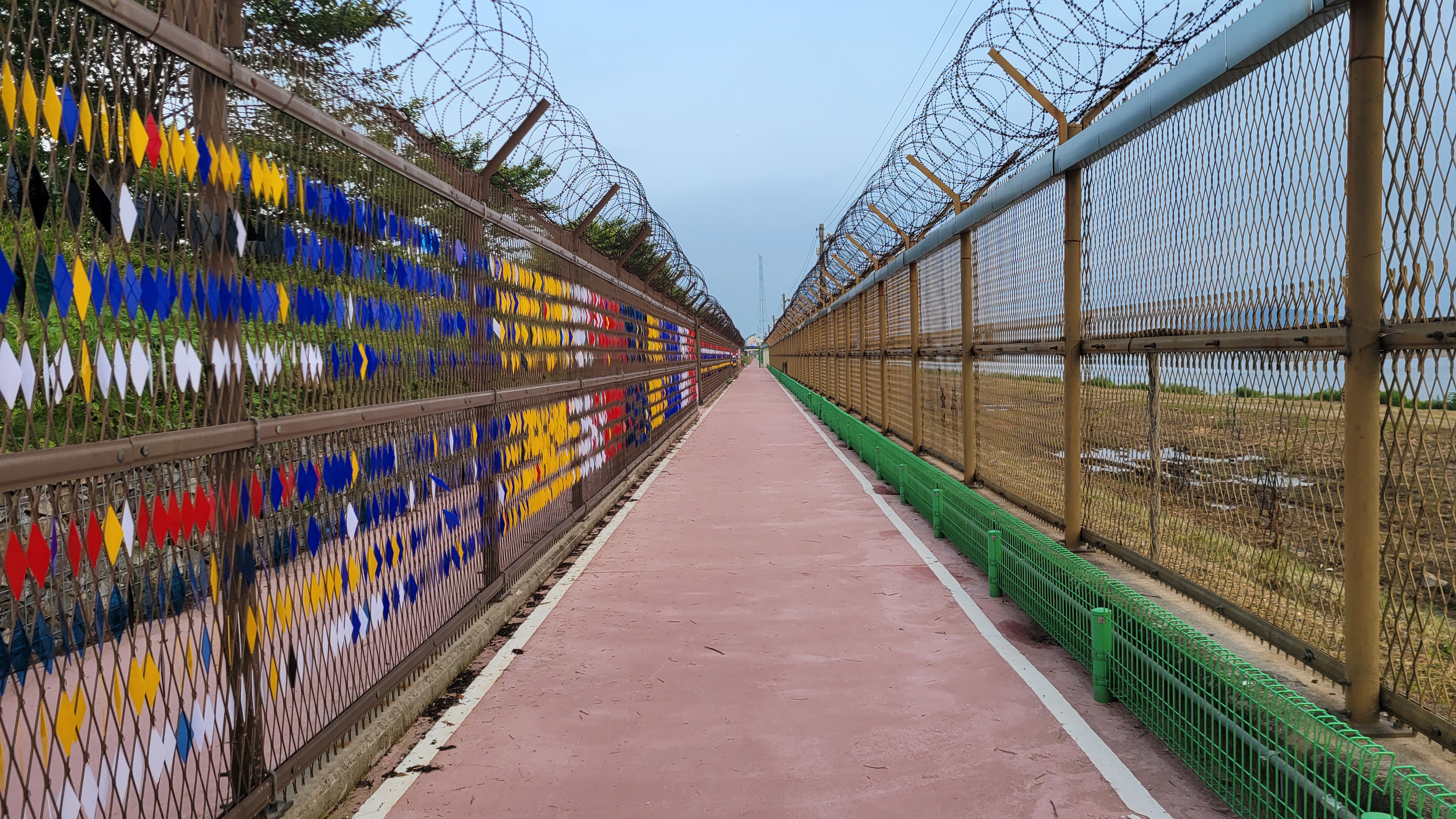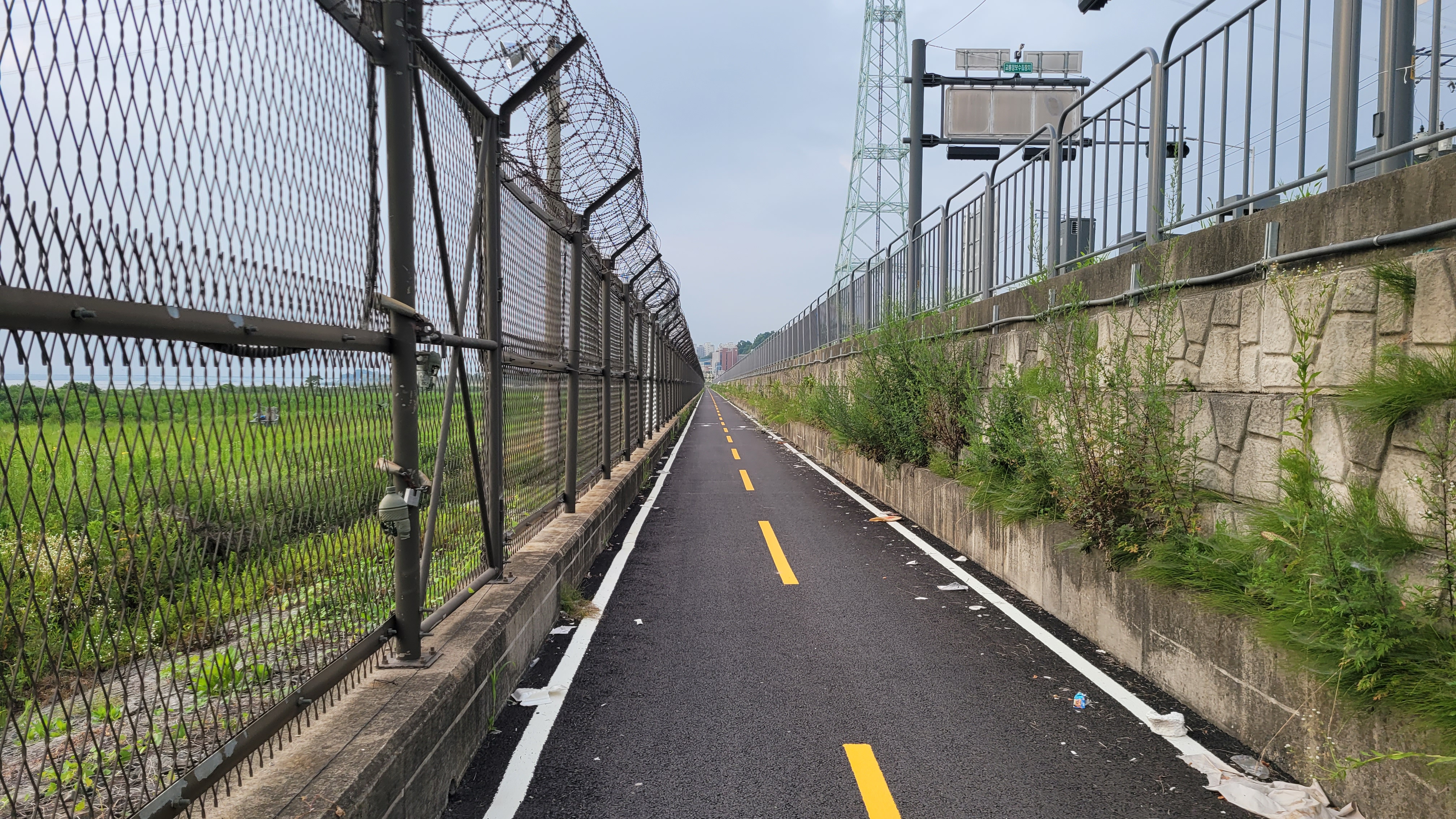 김포생태공원은 평화누리 자전거길 2코스의 가운데 쯤 되는 곳이다. 한강 하류를 따라 이어진 평화누리길에는 철책이 여전히 남아있다. 많은 구간 철거가 이루어지고 재정비 되어 개방되었지만 여전히 초소가 있고 순찰 중인 초병도 볼 수 있다.