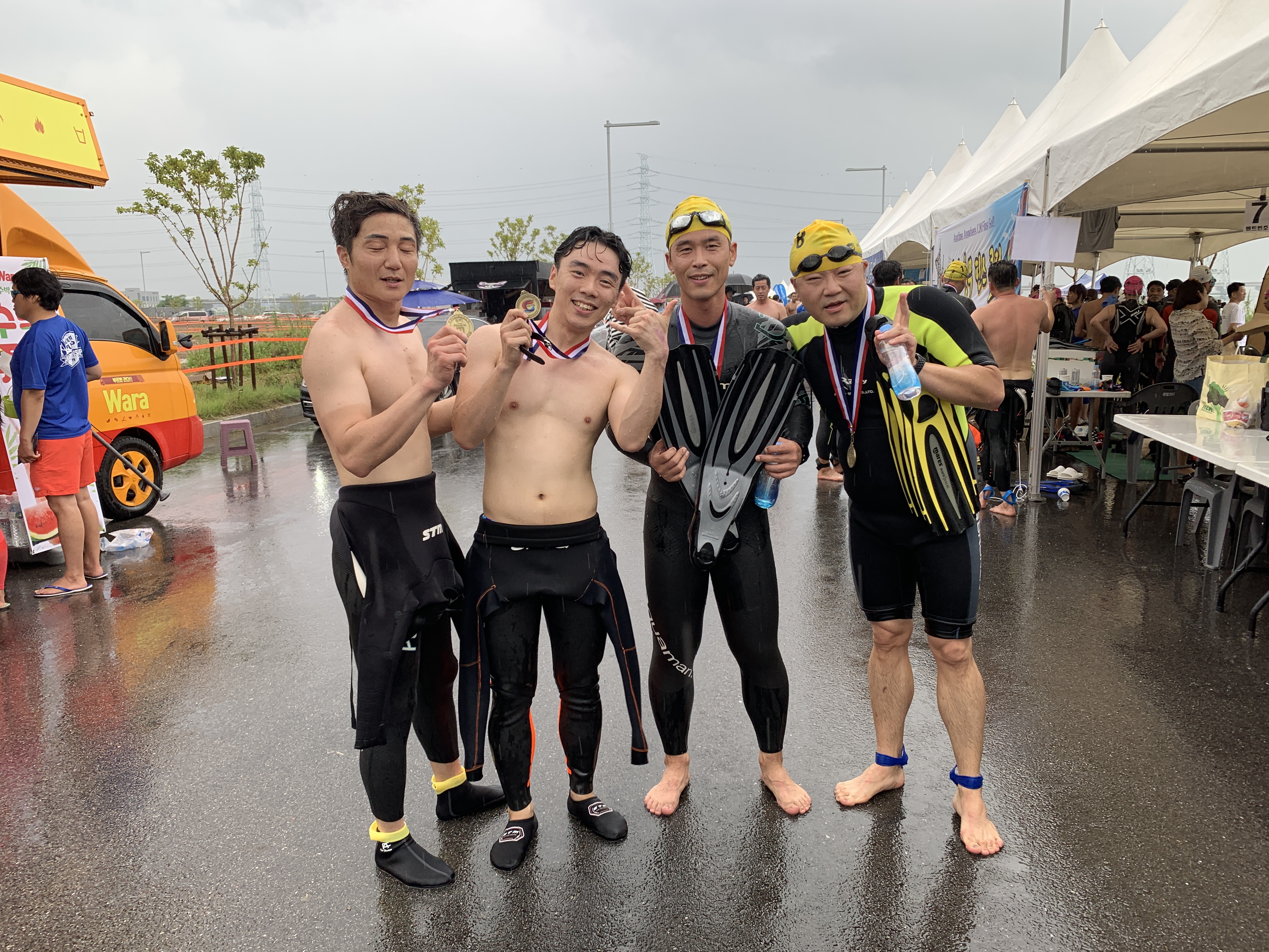 비 맞아가며 올해 첫 바다수영 완주~
