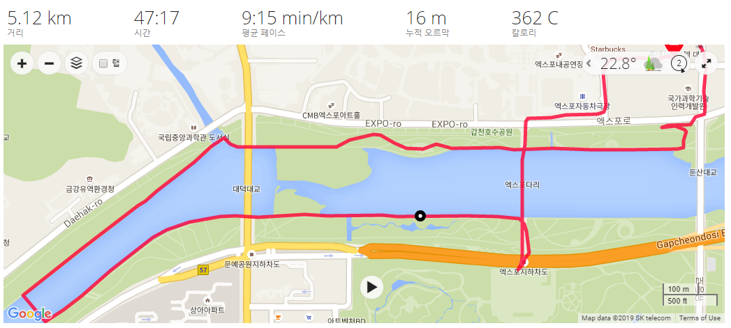 엑스포공원도 꽤 넓어 달리기와 산책에 나쁘지 않다.