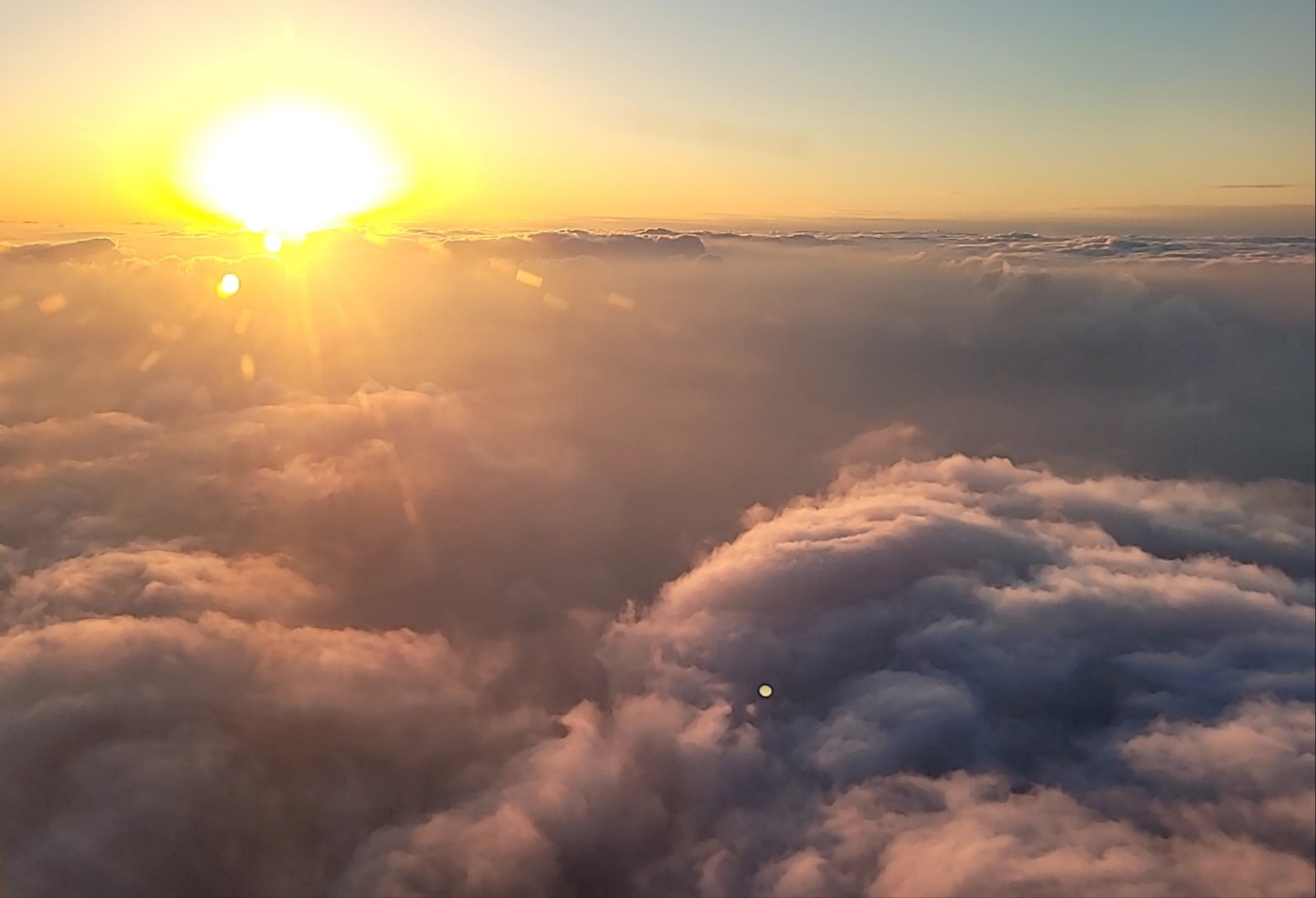 잠시 졸았다가 대략 제주 상공에 이를 무렵 구름 위로 2023년산 새해가 보인다.